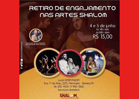 Na programação do retiro terá a realização de workshops de dança, música, teatro e ainda um momento de formação a cerca do projeto Artes Shalom. Mais informações você consegue pelos telefones (86) 3213-7004 e (86) 99961-5560.
