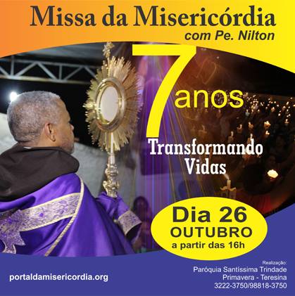 “Misericórdia! Misericórdia, eu te peço, meu Jesus”. O trecho desta canção lembra a Missa da Misericórdia, que no dia 26 de outubro completa 7 anos em Teresina. A celebração é realizada semanalmente na Paróquia da Santíssima Trindade, no bairro Primavera e é um momento de contemplação e de entrega! Muitos fiéis são tocados pela Palavra, o olhar e o amor misericordioso de Deus.