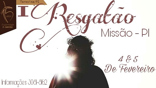 Nos dias 4 e 5 de fevereiro, a Comunidade Católica Fraternidade O Caminho estará realizando o I Resgatão em Teresina. A intenção é reunir durante os dois dias todos os religiosos, leigos e demais membros da comunidade para estarem juntos em oração. De acordo com a organização, essa será a primeira edição e tem por objetivo também agregar aqueles irmãos que não conhecem, a participarem pela primeira vez das ações evangelizadoras. O convite também se estende aqueles que já servem ou vivenciam as experiências missionárias e se doam para os projetos que são voltados, em especial, para o resgate daqueles que sofrem de algum tipo de dependência química.