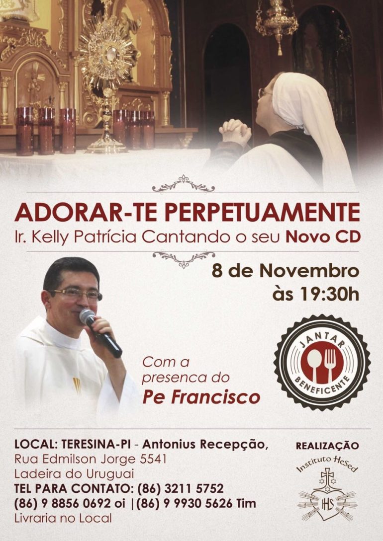 Instituto Hesed promove jantar beneficente com Ir. Kelly Patrícia
