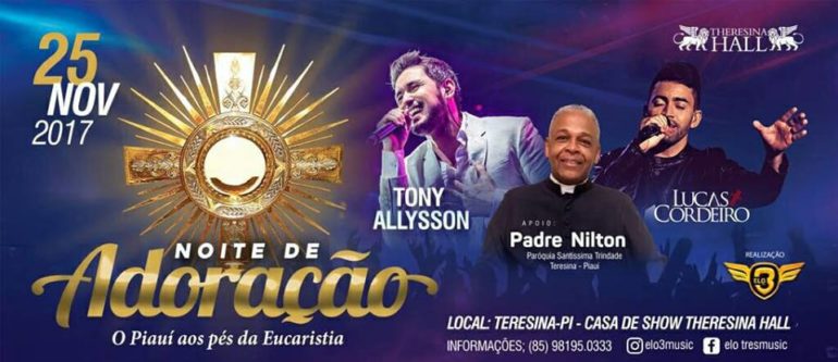 Com a temática “O Piauí aos pés da Eucaristia”, a noite de louvor e clamor terá como cenário a casa de Shows Theresina Hall com início às 19h. A “Noite de Adoração” é uma realização da Paróquia Santíssima Trindade (Forania Norte I) a partir de um desejo do pároco, padre Nilton Pereira.