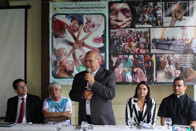 A mesa foi composta pelo Padre Leonildo Campelo, coordenador da Campanha na Arquidiocese, Vereadora Teresa Brito representando a Câmara de Vereadores, Daniel Carvalho, secretário de Justiça do Estado, Pe. Tony Batista, Vigário Geral da Arquidiocese e o Arcebispo Metropolitano Dom Jacinto Brito.