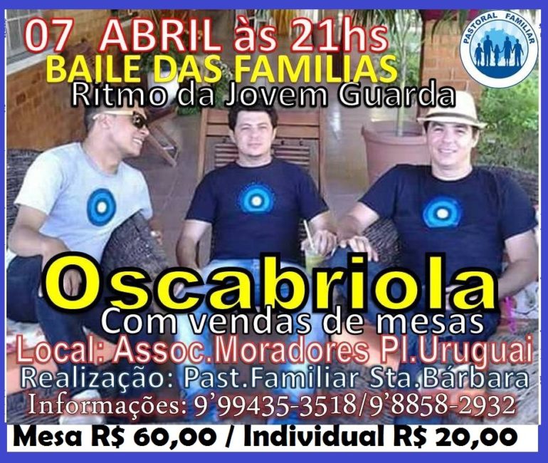 Na noite dançante os participantes poderão acompanhar a apresentação do grupo musical “Oscabriolas” que irá ofertar um repertório em ritmo de Jovem Guarda. As vendas de mesas custam R$ 60 e os ingressos individuais R$ 20. Os responsáveis por crianças com até 12 anos de idade podem comprar o ingresso para o público infantil no valor de R$10. As vendas acontecem na Igreja da Santa Bárbara. Para mais informações a organização disponibiliza os telefones (86) 98858-2932 e (86) 99435-3518.