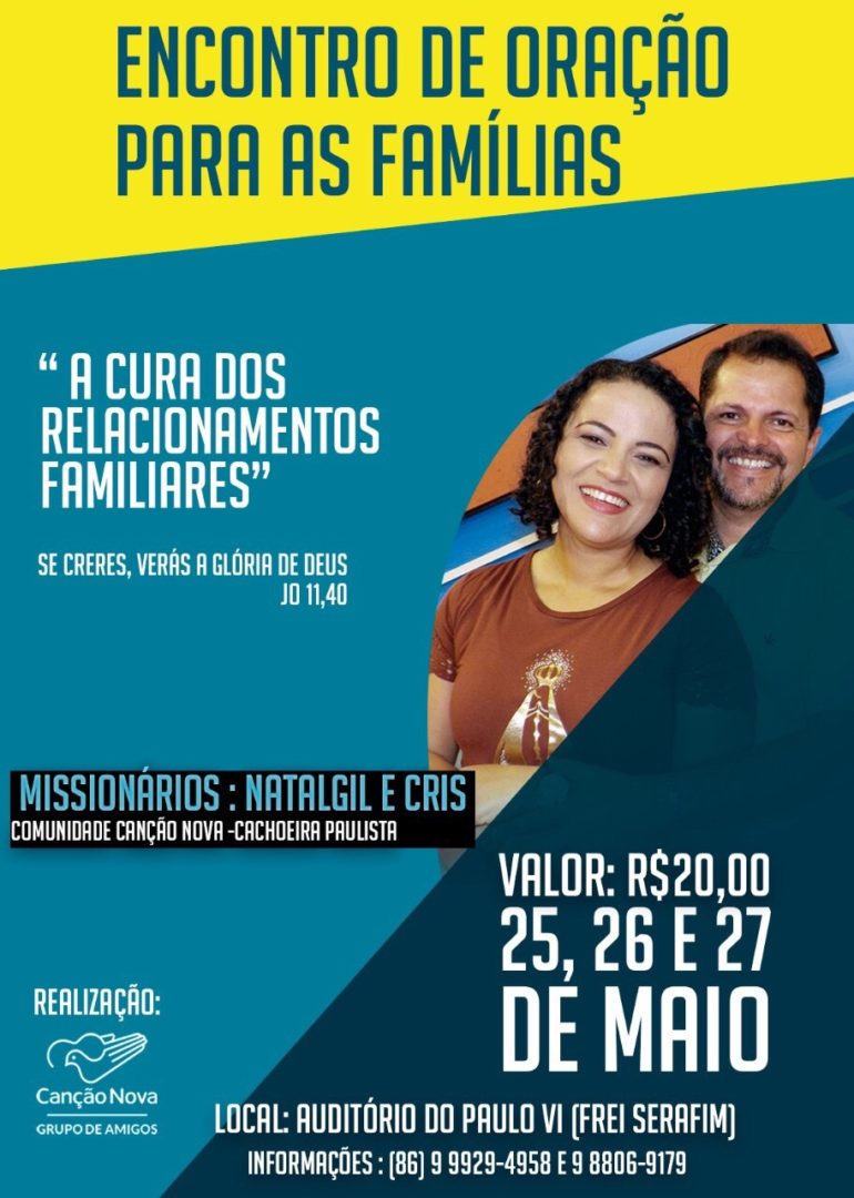 O Grupo de Amigos da Comunidade Católica Canção Nova em Teresina está organizando um momento especial para famílias de toda a Arquidiocese. A programação religiosa terá como temática central: “A Cura dos relacionamentos familiares”. De acordo com a comissão organizadora o encontro será no segundo semestre.