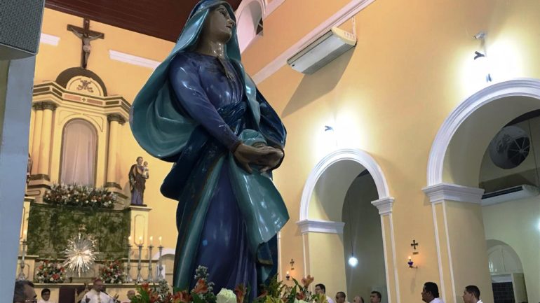 A cerimônia foi presidida apelo Arcebispo e concelebrada pelos padres Osório Barbosa (pároco), Carlos Wagner (vigário) e demais padres e diáconos da Arquidiocese. A comissão de liturgia orientou para que todas as paróquias da Arquidiocese utilizassem as cores brancas no paramentos litúrgicos para que juntos, e em unidade, todos celebrassem a padroeira.