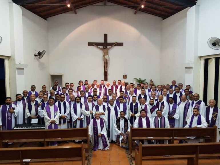 Durante plenária do retiro anual do clero de Teresina, realizada nessa sexta-feira (06) o Vigário Geral da Arquidiocese orientou os padres e diáconos sobre a liturgia da santa missa em prevenção ao Coronavírus (CODIV-19).