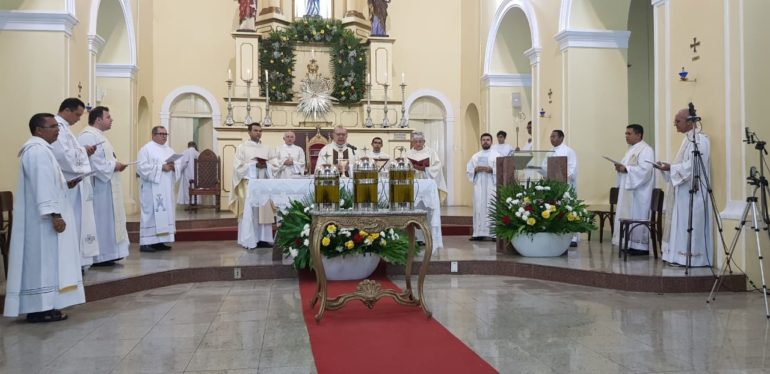 A Igreja Particular de Teresina celebrou na noite de segunda-feira (06), na Catedral Nossa Senhora das Dores, a Missa do Crisma (também chamada de Missa da Unidade e da Benção dos Santos Óleos). A celebração foi presidida por Dom Jacinto Brito e contou com a presença dos vigários forâneos e de alguns diáconos. Porém, sem a participação dos fiéis que acompanharam a celebração através dos meios de comunicação.