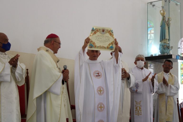 Feliz e grato pela celebração de um momento tão importante de sua vida, padre João Moura afirma que nasceu para estar no meio do povo. Ao iniciar sua fala, ele parafraseou a música “A vida de viajante”, de Luiz Gonzaga, dizendo: “A minha vida é andar por essa diocese, para que um dia eu me sinta feliz. Com tantas recordações, nas paróquias onde passei, nas comunidades do sertão a saudade no coração dos amigos que lá deixei”, cantou.