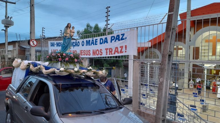 No último domingo (16) foi realizada a XX Romaria da Paz na Paróquia Santuário Nossa Senhora da Paz, com o tema: ‘Ide pelo mundo inteiro e anunciai o Evangelho a toda criatura’ (Mc 16, 15-20). Assim como em 2020, a programação do evento teve que se adaptar ao cenário de pandemia. Este ano não ocorreu a tradicional caminhada, mas na tarde do sábado (15), um carro ornamentado com a imagem de Nossa Senhora da Paz e um carro de som, percorreram as ruas da paróquia fazendo memória das romarias passadas.