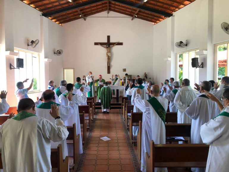 Na manhã desta quinta-feira (16), Dom Jacinto Brito, Arcebispo de Teresina, celebrou a benção de envio do padre Antônio Marcos da Conceição, que sairá em missão para o município de Coari, no Amazonas. A celebração aconteceu durante a 2ª Plenária do Clero de 2021, que acontece no Centro de Treinamento Pe. Tony Batista, com a participação de padres e diáconos da Arquidiocese de Teresina.