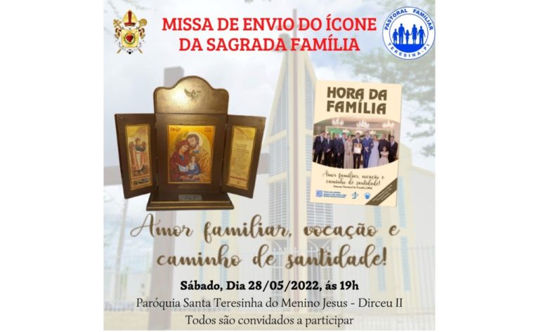 A missa de envio do Ícone da Sagrada Família de Nazaré, que marca o início da preparação para a Semana Nacional da Família 2022, vai ser celebrada neste sábado (28), às 19h, na Paróquia de Santa Teresinha do Menino Jesus, no bairro Dirceu II, forania Sudeste. A celebração será presidida pelo padre Gonçalo Lima, diretor espiritual do Setor Família na Arquidiocese, e contará com a presença de fiéis e das pessoas envolvidas na organização do evento.
