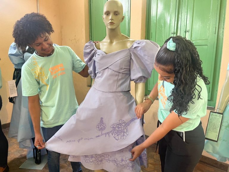 João Ítalo, estudante assistido pelo projeto, contou que poder participar diretamente da confecção dos figurinos foi muito gratificante. “A casa me acolheu em um dos momentos mais difíceis da minha vida. É muito gratificante ver o trabalho dos profissionais estando a frente dos alunos, sempre ajudando e buscando alcançar os melhores resultados. Fui desafiado a desenhar a flor do caneleiro em todas as peças, e poder ver que consegui estampar minha arte nesse projeto é de uma felicidade sem tamanho”, contou o estudante.
