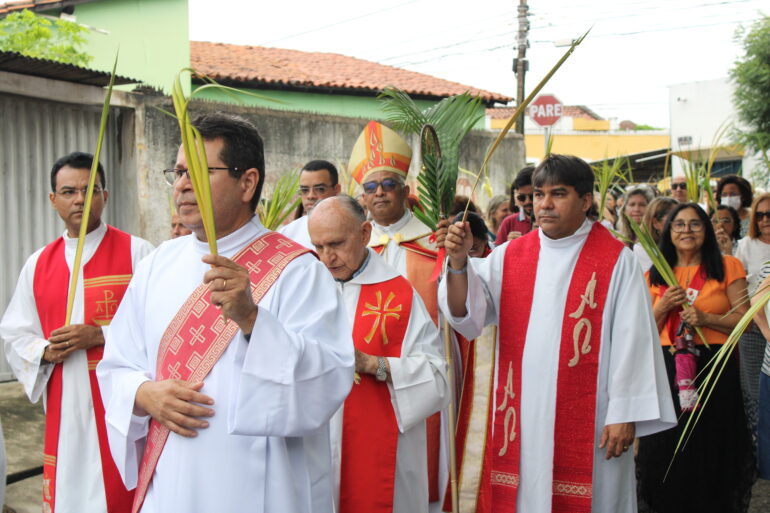 Para bem vivenciar os mistérios da paixão, morte e ressurreição de Cristo, neste domingo, 02 de abril, a Arquidiocese de Teresina iniciou a programação da Semana Santa na Catedral Metropolitana de Nossa Senhoras das Dores. Durante a manhã, dezenas de fiéis se reuniram na tradicional procissão do Domingo de Ramos, que teve como ponto de partida o cruzamento das Ruas Arlindo Nogueira e Santa Luzia, que compreende a comunidade Santa Rita. Em seguida, o arcebispo de Teresina, Dom Juarez Marques, presidiu a Celebração Eucarística do Domingo da Paixão do Senhor na Igreja Matriz.