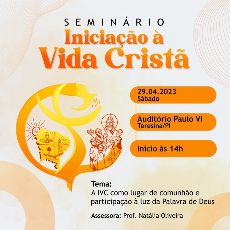 No próximo dia 29 de abril, o auditório Paulo VI, localizado na Avenida Frei Serafim, recebe novamente os Catequistas da Arquidiocese de Teresina para a segunda parte do 6º Seminário de Iniciação à Vida Cristã (IVC). O evento terá início às 14h e desta vez será assessorado pela professora Natália Oliveira, doutoranda da História da Igreja e membro da Comissão Arquidiocesana de Catequese de Campo Maior.