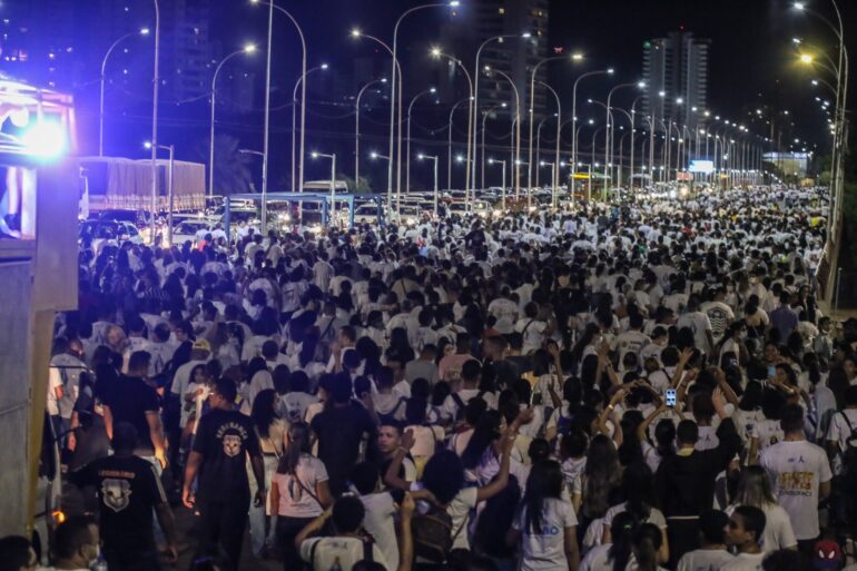 Após a celebração da Santa Missa, que será presidida pelo arcebispo de Teresina, Dom Juarez Marques, os caminheiros iniciarão o trajeto caminhando pela Avenida Frei Serafim. Em cima do trio elétrico, o Grupo Melhor de Três, composto por Flávio Moura, Soraya Castello Branco e João Cláudio Moreno, apresentará um vasto repertório rico em músicas regionais e outros ritmos para animar os participantes até a chegada no Parque Potycabana, onde a banda nacional católica Missionário Shalom fará o show de encerramento.