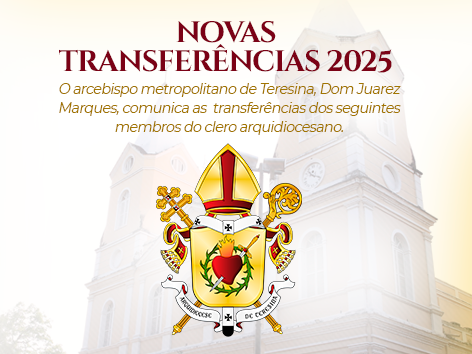Notícias Novas Transferências 2025 O arcebispo metropolitano de Teresina, Dom Juarez Marques, comunica as transferências dos seguintes membros do clero arquidiocesano. Maria Clara Guimarães
