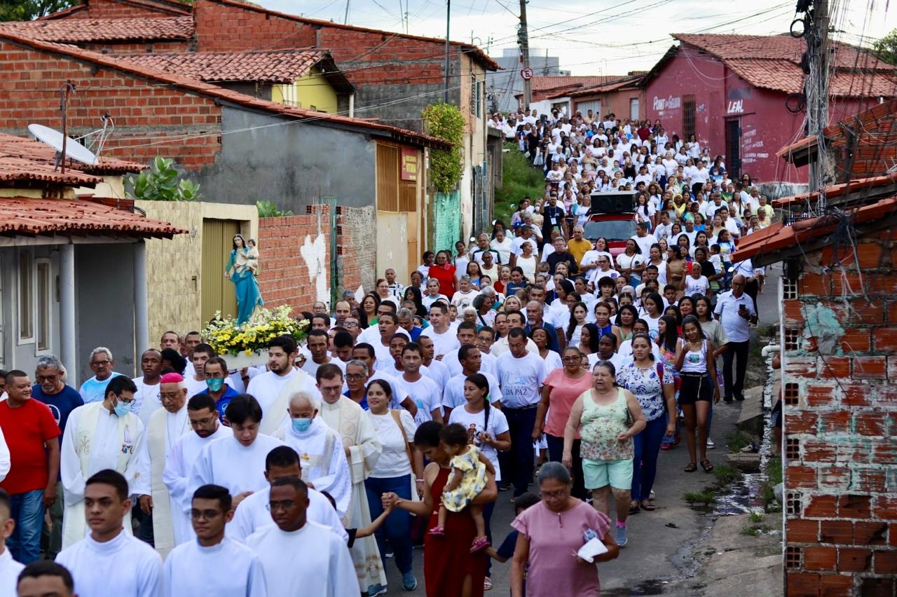 Com o tema “Com Maria, somos peregrinos de esperança, construindo a paz!”, a 24ª edição da Romaria da Paz aconteceu no último domingo (18), reunindo centenas de fiéis em um momento de fé, oração e compromisso com a transformação social. A concentração teve início às 16h30, na Igreja Nossa Senhora do Perpétuo Socorro, no bairro Redenção, de onde os romeiros seguiram em peregrinação até a Paróquia Santuário Nossa Senhora da Paz, localizada na Vila da Paz.