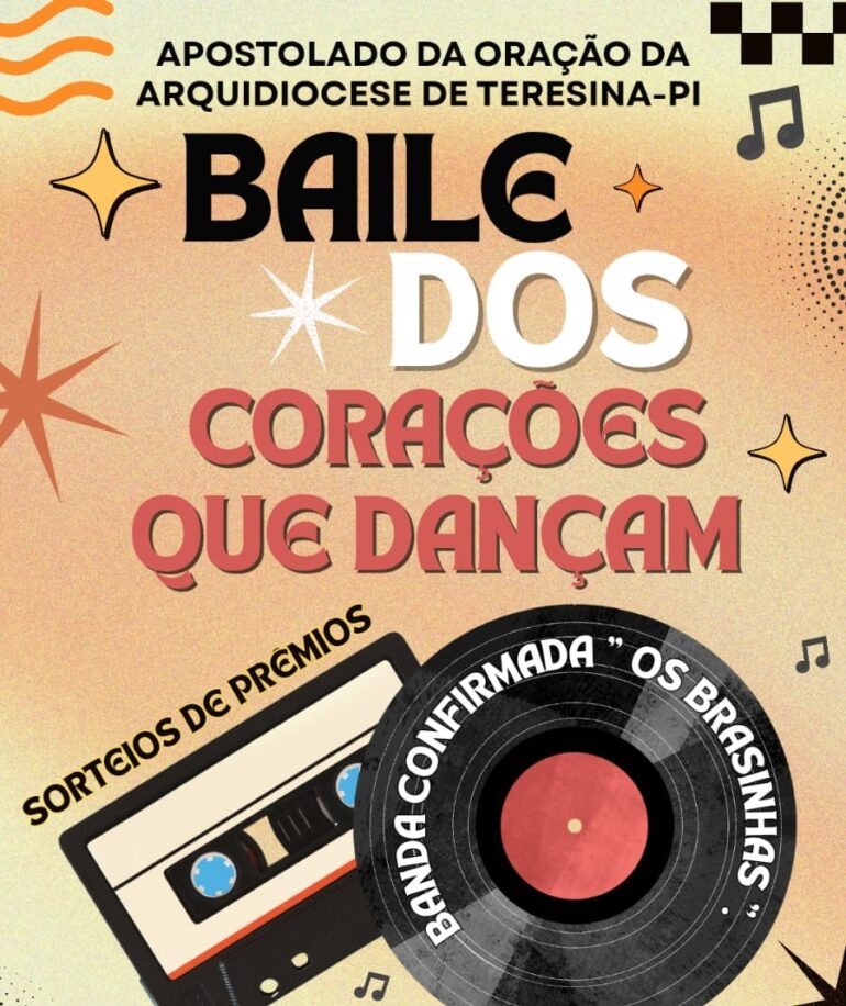 O Apostolado da Oração da Arquidiocese de Teresina promove nesta sexta-feira (10) o “Baile dos corações que dançam”, às 20h, no Clube Cabos e Soldados (bairro Cristo Rei). O evento será realizado em prol do 3º Encontro Arquidiocesano do Apostolado da Oração que acontece no próximo mês.