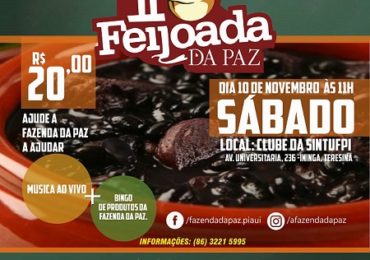 A Fazenda da Paz realiza no dia 10 de novembro a segunda edição da Feijoada da Paz. O evento será no clube do SINTUFPI, na Universidade Federal do Piauí e tem o objetivo de arrecadar fundos para a …