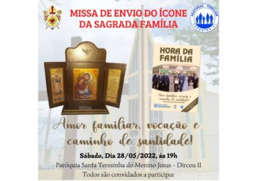A missa de envio do Ícone da Sagrada Família de Nazaré, que marca o início da preparação para a Semana Nacional da Família 2022, vai ser celebrada neste sábado (28), às 19h, na Paróquia de Santa Te…