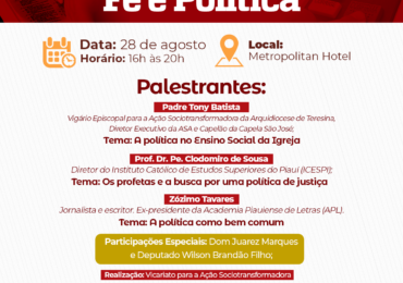 A Arquidiocese de Teresina, por meio do Vicariato Episcopal para a Ação Sociotransformadora, realiza na tarde desta quarta-feira (28) o Seminário Fé e Política. O evento, que vai acontecer das 16h …