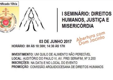 No dia 03 de junho a Comissão de Direitos Humanos da Arquidiocese de Teresina vai realizar o I Seminário: Diretos Humanos, Justiça e Misericórdia. O momento terá como cenário o Auditório do Centro …