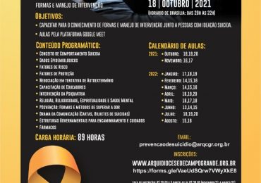 Estão abertas as inscrições para o Curso de Prevenção de Suicídio, que está sendo realizado pela Arquidiocese de Campo Grande, em Mato Grosso do Sul, em parceria com a Universidade Católica Dom Bos…