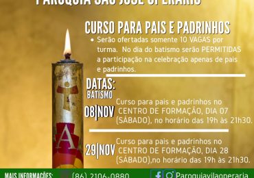 Paróquia São José Operário retoma calendário de realização de curso para pais e padrinhos