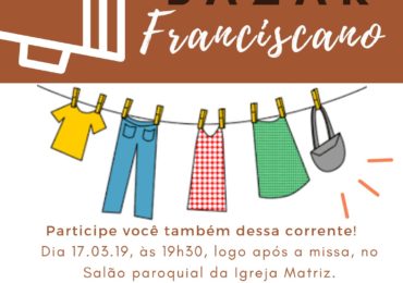 Proporcionar às pessoas de baixa renda a aquisição de peças semi novas a um preço simbólico. Esse é o objeto do Bazar de São Francisco que acontecerá após a missa do dia 17/03 no salão Paroquial da…