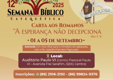 A Arquidiocese de Teresina já vive o clima de preparação para a 12ª Semana Bíblico-Catequética, que acontecerá entre os dias 1º e 5 de setembro, com o tema “A esperança não decepciona” (Rm 5,5). O …