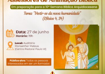 No próximo dia 10 de maio, a Comissão Bíblica Arquidiocesana promove formação para capacitar os Assessores de Animação Bíblica para levarem a Palavra de Deus às diversas unidades pastorais da Arqui…