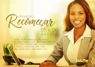 A Comunidade Católica Shalom em Teresina realiza, nos dias 5 e 6 de agosto de 2017, a quarta edição do Encontro Recomeçar. O momento, destinado a profissionais, é oportunidade para repensar vida e …