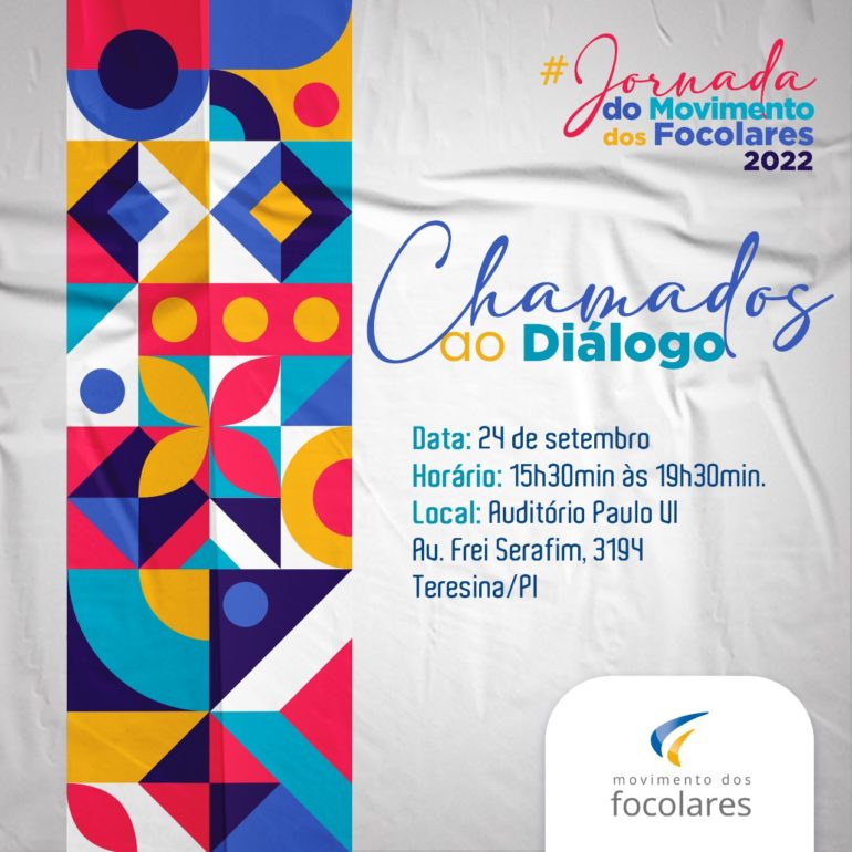 Com o tema “Chamados ao Diálogo”, no próximo dia 24 de setembro acontecerá a Jornada do Movimento dos Focolares no auditório Paulo VI. Com o início previsto para às 15h30min e o término as 19h30min com a celebração da Santa Missa, o evento será aberto e direcionado para todos aqueles que desejam aprofundar a arte de construir relacionamentos.
