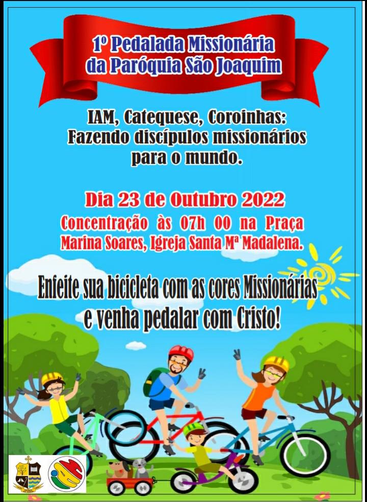 A Paróquia São Joaquim, pertencente a forania Norte I, realizará neste domingo (23) a 1ª Pedalada Missionária, organizada pelo pároco Almir Camelo e pela Infância e Adolescência Missionária – IAM, Catequese e Coroinhas. A ocasião é uma oportunidade de proporcionar às crianças e adolescentes a vivência de seu protagonismo na Missão da Igreja, juntamente com a oportunidade de todos os paroquianos estarem em unidade.