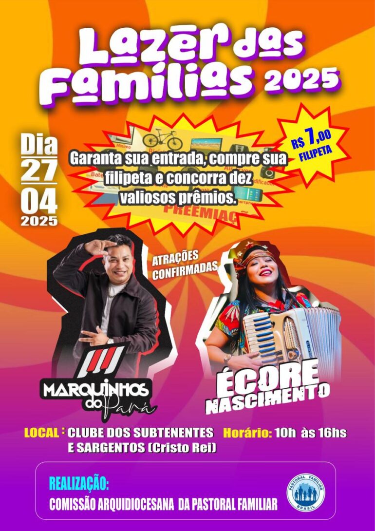 Ele é marcado por uma programação diversificada, incluindo música ao vivo, brincadeiras para as crianças e atividades voltadas para o lazer familiar. A momento iniciará a partir das 10h e é pensado para todas as idades, reunindo pessoas de diversas paróquias da Arquidiocese de Teresina em um clima de união, descontração e espiritualidade.