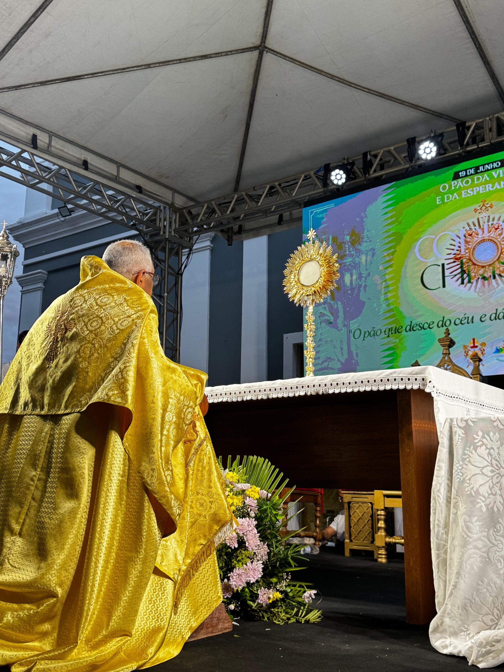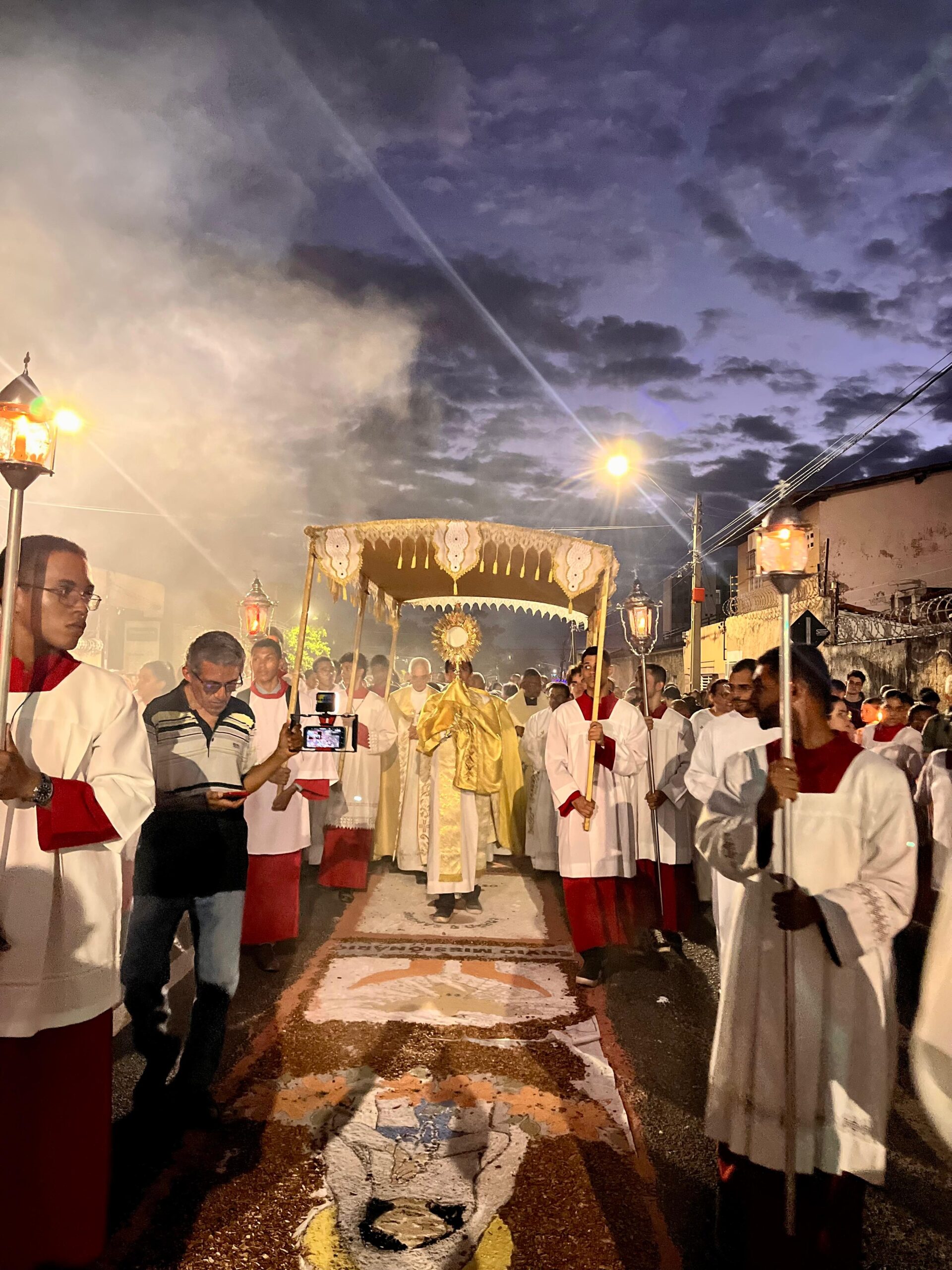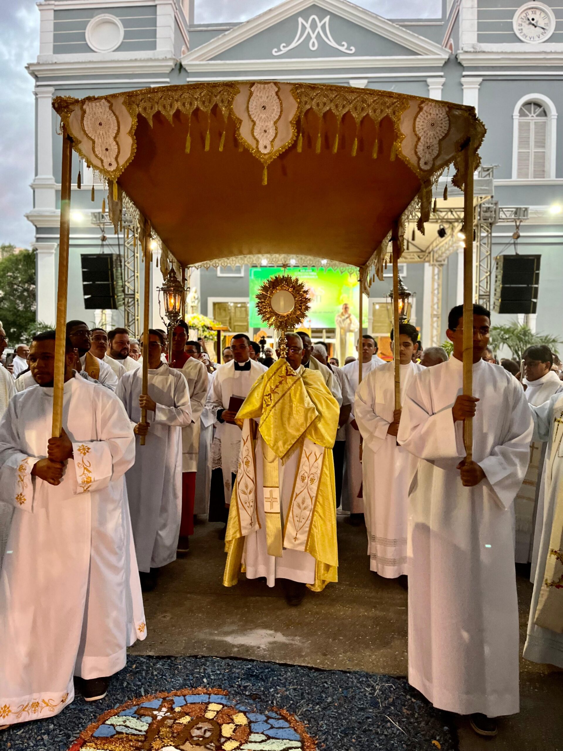 Ele explicou que a Eucaristia é, ao mesmo tempo, sacrifício e banquete, onde é o próprio Cristo que se entrega como alimento espiritual para a humanidade. “Essa celebração é memória e esperança. Ela nos aponta para a eternidade, mas também nos convida ao compromisso concreto com o agora da nossa história, por meio do amor, da justiça e da partilha”, explicou. O arcebispo também agradeceu o empenho das equipes que prepararam os tapetes, destacando que o trabalho realizado foi uma verdadeira catequese visual, expressando fé e devoção através da arte.