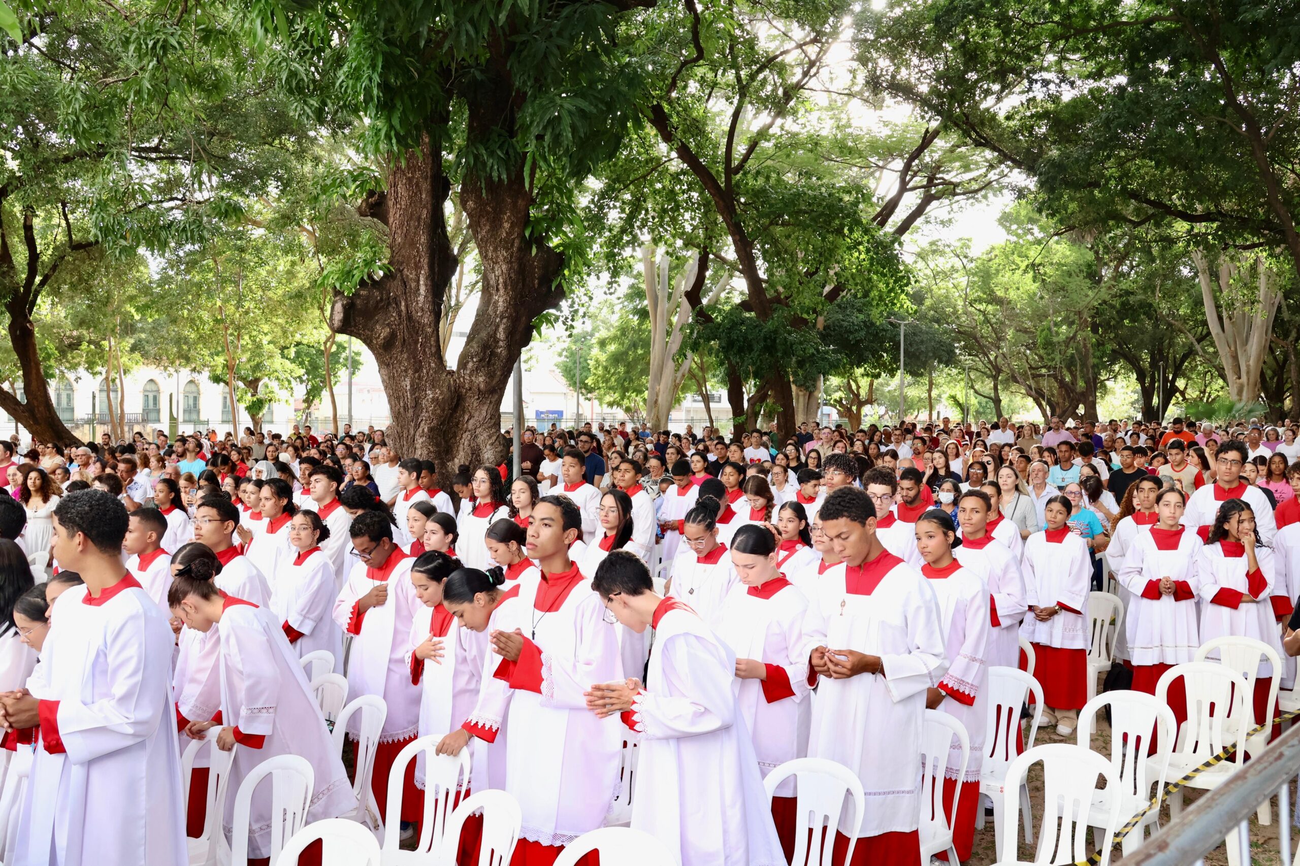 Entre os muitos fiéis presentes, Maria do Amparo, da Paróquia São Joaquim, compartilhou a emoção de viver esse momento. Para ela, participar da solenidade é algo que não se consegue descrever com palavras. “É um momento muito bonito e especial. Sempre que posso, faço questão de estar aqui”, relatou.