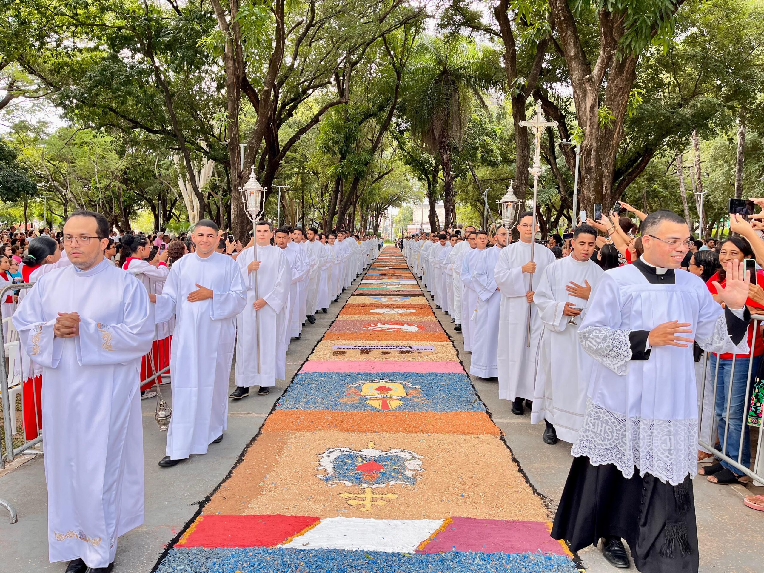 Neste ano, os tapetes ganharam ainda mais significado ao ilustrarem os eixos temáticos do novo Plano de Pastoral da Arquidiocese, organizados em cinco blocos catequéticos ao longo de quase dois quilômetros de extensão. A proposta foi unir beleza, fé e reflexão pastoral em uma expressão concreta de evangelização.