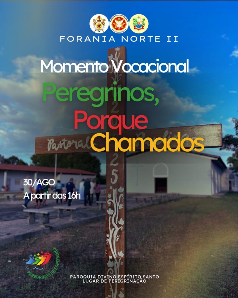 A Forania Norte II realiza no próximo dia 30 de agosto, a partir das 16h, o “Momento Vocacional: Peregrinos porque chamados”, como encerramento do Mês Vocacional. O evento acontecerá na Paróquia do Divino Espírito Santo, na Igreja Matriz de São Vicente, escolhida pelo arcebispo metropolitano como local de peregrinação no Ano Santo Jubilar.