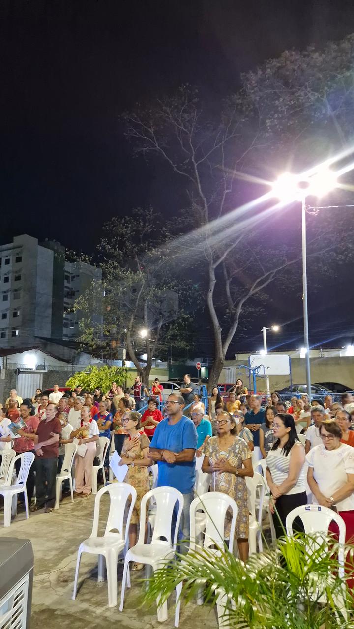 Nesta quarta-feira, 12 de novembro, foi realizada a última missa de pré-festejo de Cristo Rei, reunindo os setores C e D da Paróquia de Cristo Rei, na Praça Madre Savina Petrilli. A celebração contou com a presença de fiéis, agentes de pastorais e membros da comunidade, que participaram com fé e devoção do encerramento das missas preparatórias para o festejo deste ano.