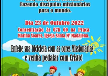 A Paróquia São Joaquim, pertencente a forania Norte I, realizará neste domingo (23) a 1ª Pedalada Missionária, organizada pelo pároco Almir Camelo e pela Infância e Adolescência Missionária – IAM, …